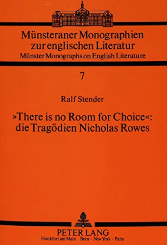 Complete summary of ... «There is no Room for Choice»: die Tragödien Nicholas Rowes (Münsteraner Monographien zur englischen Literatur / Münster Monographs on English Literature). eNotes plot summaries cover all the significant action of «There is no Room for Choice»: die Tragödien Nicholas Rowes (Münsteraner Monographien zur englischen Literatur / Münster Monographs on English Literature) Kindle ... document PDF. This Page ...