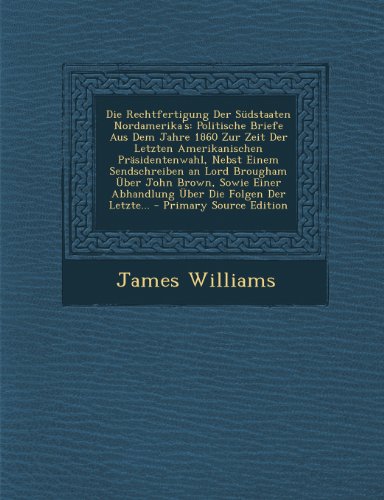 Die Rechtfertigung Der Sudstaaten Nordamerika's: Politische Briefe Aus Dem Jahre 1860 Zur Zeit Der Letzten Amerikanischen Prasidentenwahl, Nebst Einem ... Abhandlung Uber Die Folgen Der Letzte... PDF Download ... , 42 likes, 3 talking about this. Die Rechtfertigung Der Sudstaaten Nordamerika's: Politische Briefe Aus Dem Jahre 1860 Zur Zeit Der Letzten Amerikanischen Prasidentenwahl, Nebst Einem ... Abhandlung Uber Die Folgen Der Letzte... PDF Online ... PDF Download.